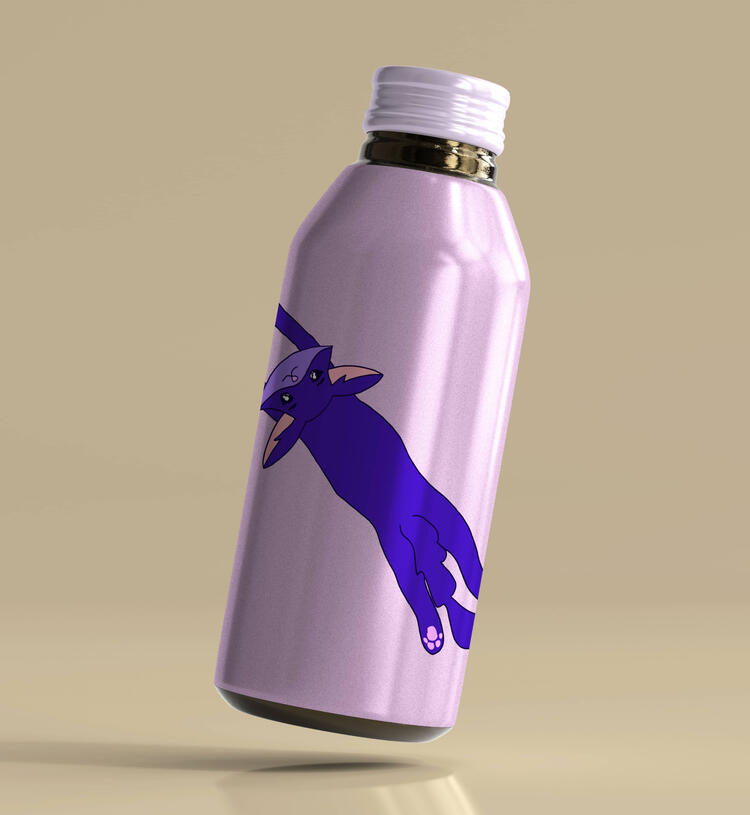 To show more how the charater can related to my self brand, I create a simple design which is a bottle design.